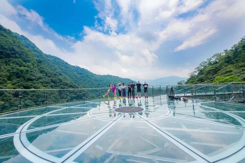 懸空玻璃平臺全長202米,以72米的懸空跨度名列世界第一,為美國科羅拉多大峽谷的U形橋(21米)的3.5倍;點(diǎn)睛之筆是平臺頂部直徑16.8米的玻璃觀景圓臺,這是和瀑布親密接觸的絕佳位置。圓臺中間獨(dú)具匠心地設(shè)計了網(wǎng)格狀鏤空,山風(fēng)穿透,頓生寒意;踏步其上,如墜深淵,令人心驚膽寒。