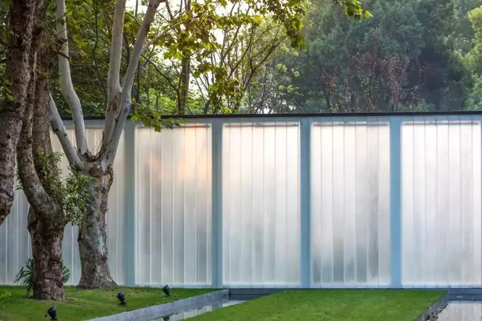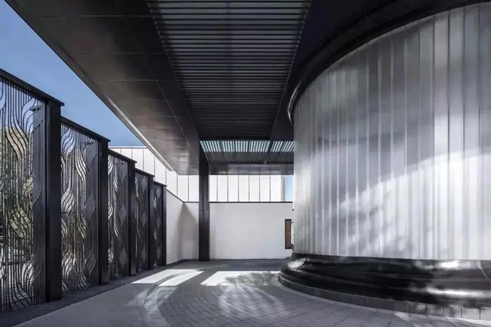簡單的垂直長條紋,延伸并折射被阻擋的物體,給人垂直拉伸的視覺體驗。