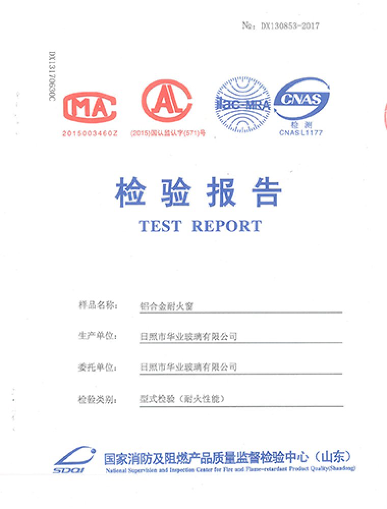 鋁合金耐火窗檢測報告