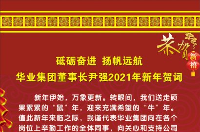 新年伊始,萬象更新。轉(zhuǎn)眼間,我們送走碩果累累的“鼠”年,迎來充滿希望的“?!蹦?。值此新年來臨之際,我謹(jǐn)代表華業(yè)集團(tuán)向在各個(gè)崗位上辛勤工作的全體同事,向關(guān)心和支持公司發(fā)展的各級領(lǐng)導(dǎo)、廣大客戶、員工家屬及各界朋友,致以誠摯的問候和衷心的感謝!祝大家在新的一年里,工作順利、身體健康、闔家幸福、萬事如意!?