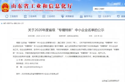 根據(jù)《山東省“專精特新”中小企業(yè)認(rèn)定管理辦法》(魯工信發(fā)〔2020〕7號(hào))、《關(guān)于組織申報(bào)2020年度山東省“專精特新”中小企業(yè)和對(duì)往年“專精特新”中小企業(yè)進(jìn)行復(fù)核的通知》等文件精神,省工業(yè)和信息化廳組織開(kāi)展了2020年度省級(jí)“專精特新”中小企業(yè)評(píng)選工作。經(jīng)主管部門(mén)推薦、專家評(píng)審等程序,確定我公司為2020年度省級(jí)“專精特新”中小企業(yè)。