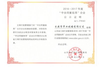 祝賀我公司獲得2016-2017年度省級“守合同重信用企業(yè)”。