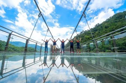 昨天上午, 在懸空跨度72米、直徑16.8米的懸空玻璃平臺(tái)上,來(lái)自世界紀(jì)錄協(xié)會(huì)(World Record Association)的美國(guó)認(rèn)證官邁克·溫特森和中方認(rèn)證官?gòu)埥⌒?,清遠(yuǎn)古龍峽景區(qū)的懸空玻璃平臺(tái)、玻璃吊橋、玻璃觀光組合、叢林飛躍四個(gè)項(xiàng)目,挑戰(zhàn)世界紀(jì)錄成功。